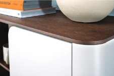 Kolekcja Mula doskonale sprawdzi się w salonie, jadalni czy pokoju dziennym. Wysokie witryny, pojemne komody i stoliki o minimalistycznej formie oferują nie tylko wyjątkowy wygląd, ale też funkcjonalność i komfort użytkowania. Szklane elementy z delikatnym oświetleniem LED dodają lekkości i podkreślają piękno naturalnego drewna.