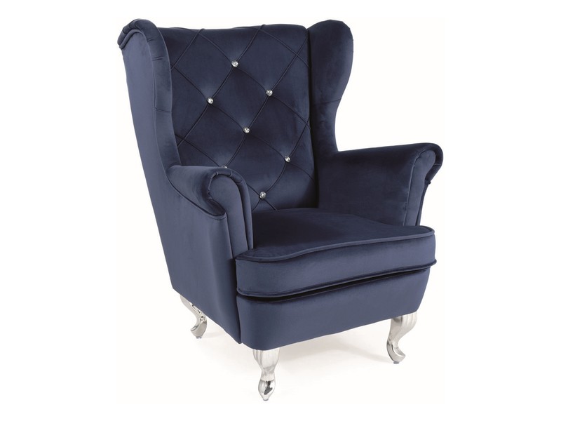 fotelik dziecięcy, tkanina aksamit: granatowy Bluvel 86 / nogi: metal, kolor: srebrny Cechy produktu |